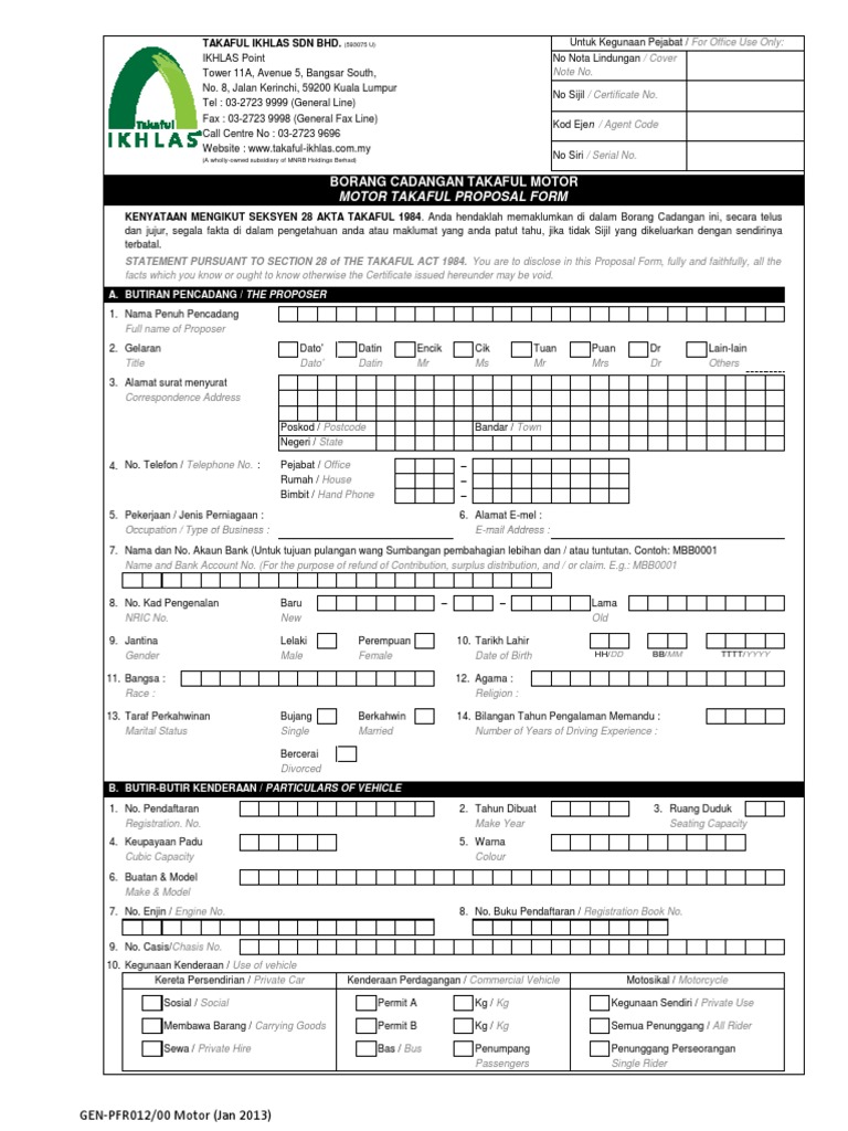 . Undang-undang jalanraya Malaysia mewajibkan setiap kenderaan bermotor perlu memiliki perlindungan insurans pihak ketiga untuk melindungi kepentingan dan hak orang lain. Borang permohonan lawatan ke luar negara. Susuli dengan surat permohonan untuk membatalkan polisi anda.